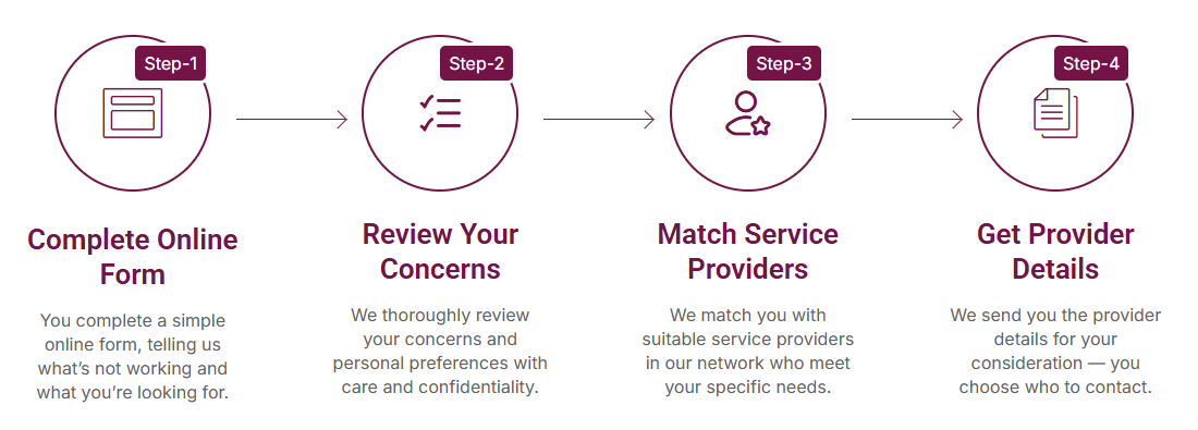 We send you the provider details for your consideration — you choose who to contact.